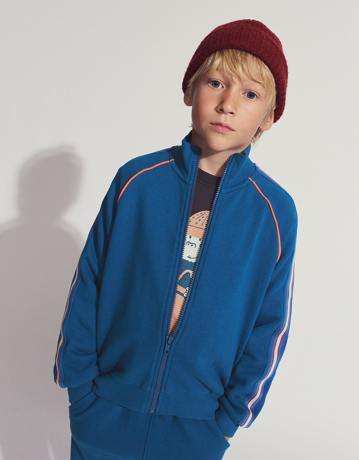 VICTOR ZIP-UP TRACK JACKET BLUE WITH STRIPE DETAILING