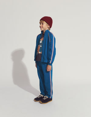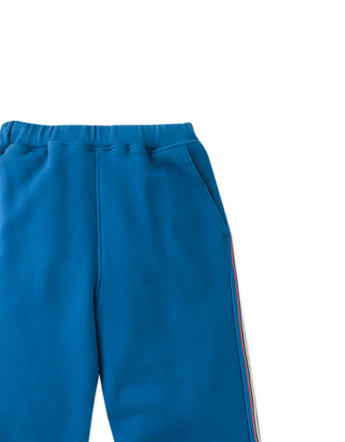 Give your little one ultimate comfort and sporty style with the Warner Jogger Pants in Blue, featuring athletic stripe accents and a sleek, versatile design perfect for play or casual outings.